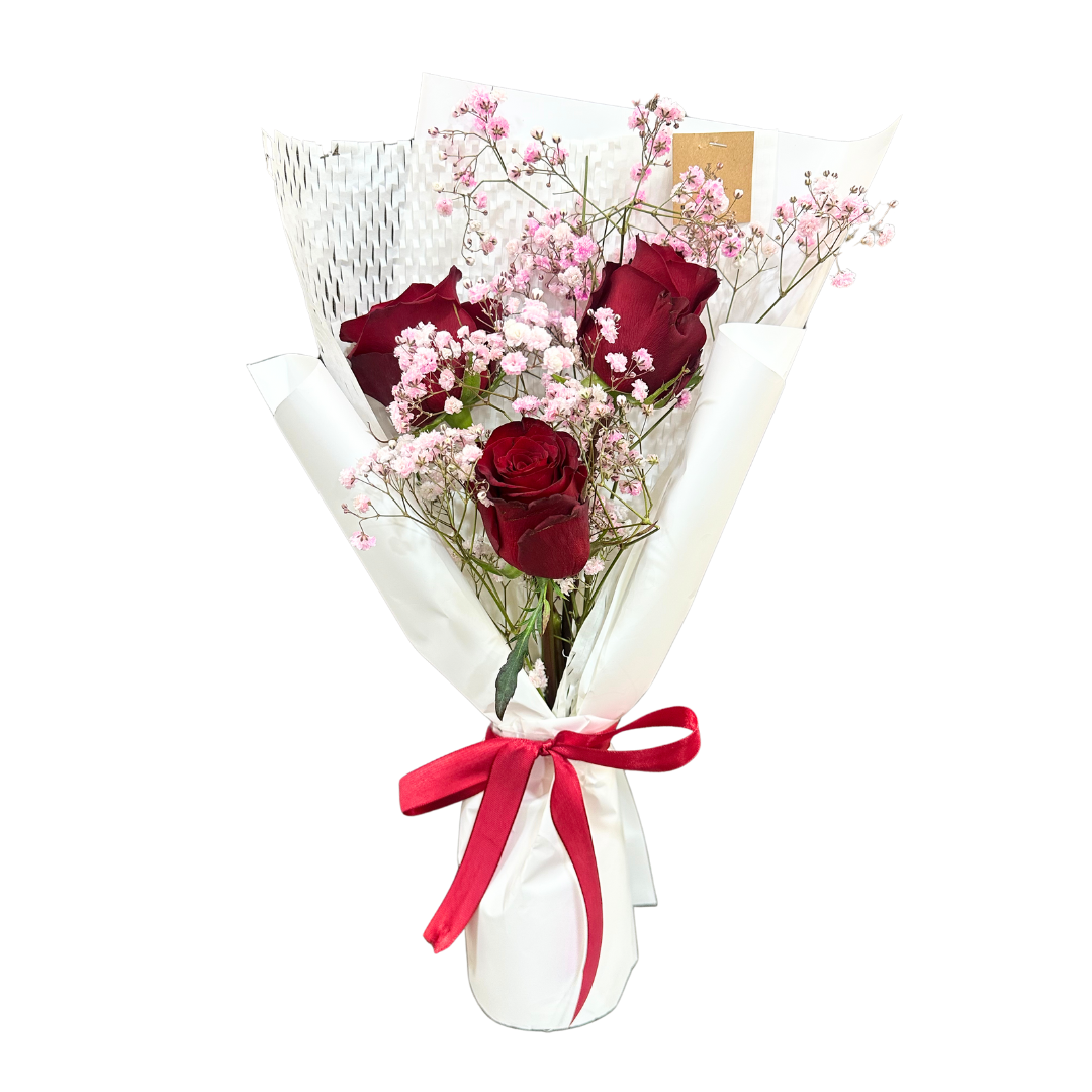 Red Rose (3 Stems),Pink Baby's Breath (2 Stems)