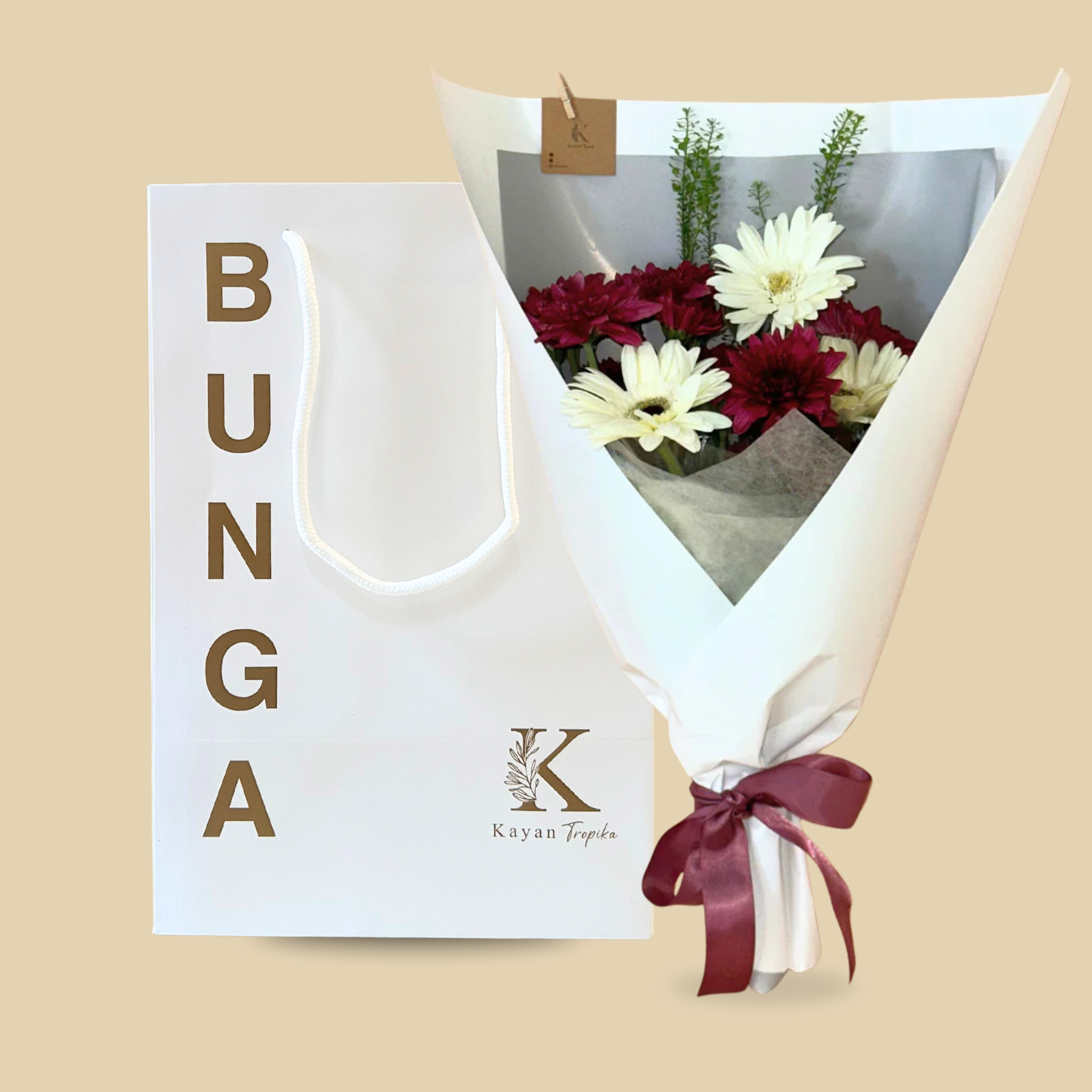 Maroon Pom Pom (2 Stalks), White Gerbera (3 Stems)