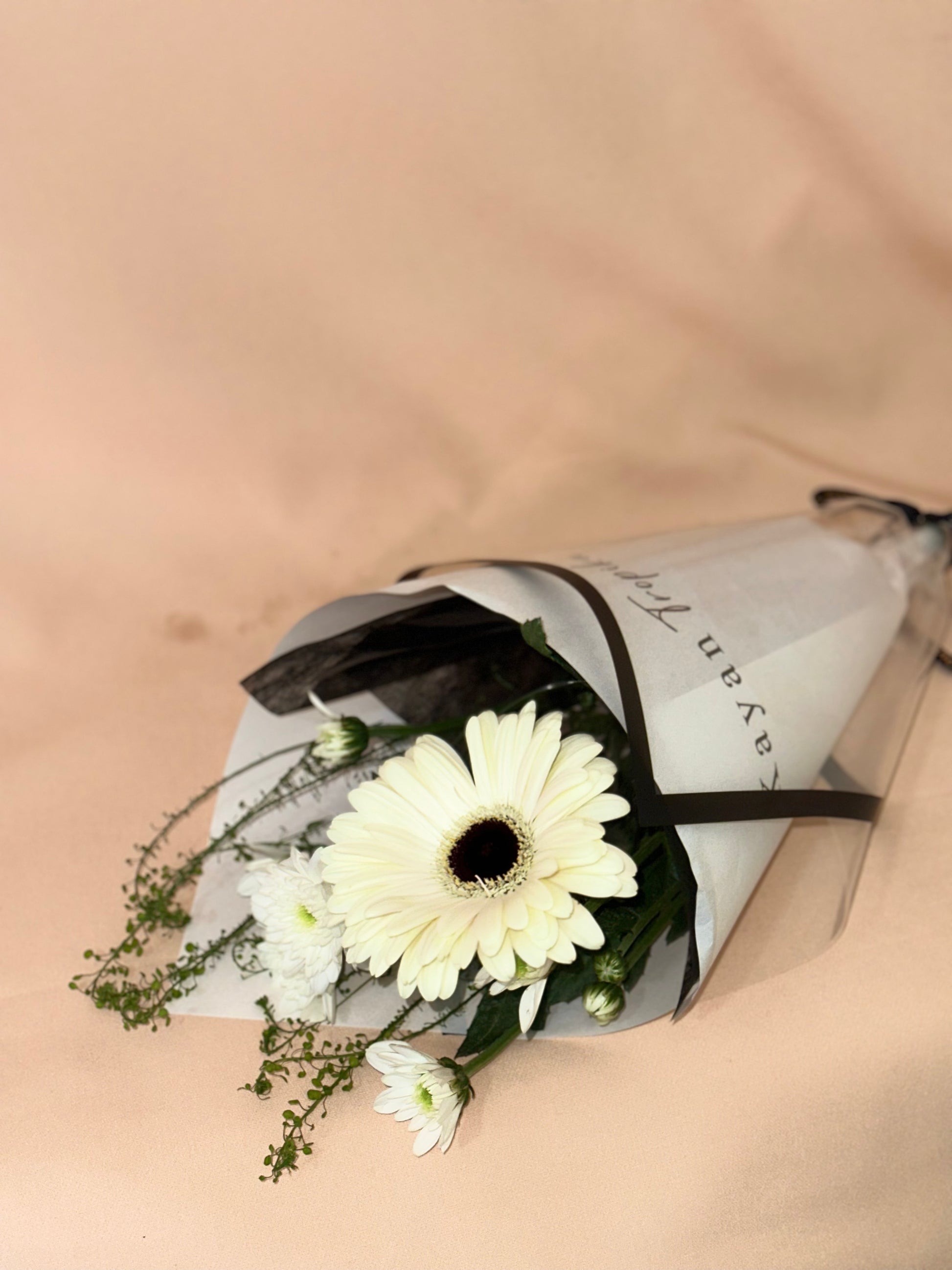 White Gerbera (1 Stem), White Pom Pom (1 Stalk)