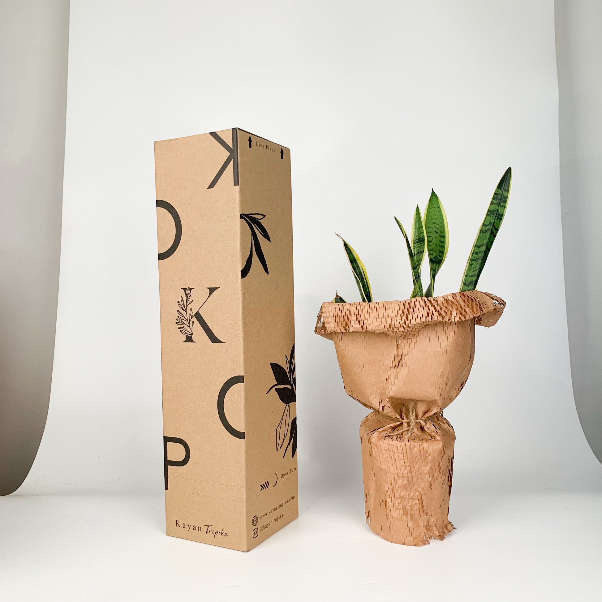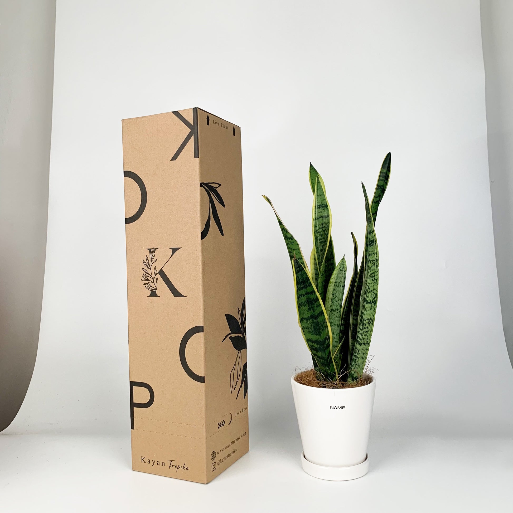Your plant will arrive in our classic style 5.5” baba pot; with drainage holes and a saucer.