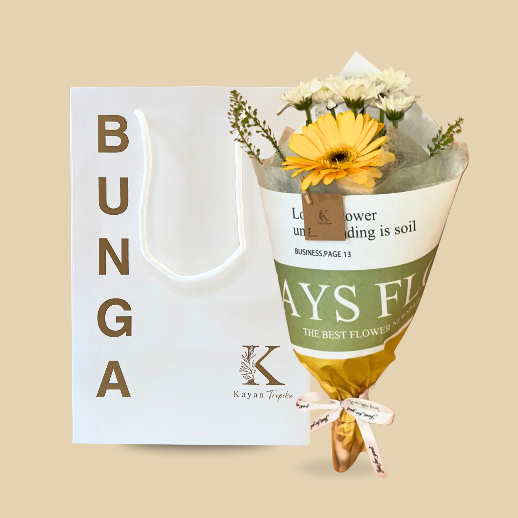 Celebrate the beauty of simplicity with the Myra Bouquet, a charming arrangement that exudes warmth and elegance. Featuring a radiant yellow gerbera, symbolizing joy and positivity, alongside a delicate white pom pom that adds a touch of softness, this bouquet is a perfect blend of bright cheer and understated grace. Ideal for any occasion, the Myra Bouquet brings a refreshing brightness to your space, making it a delightful gift or a lovely addition to your home.