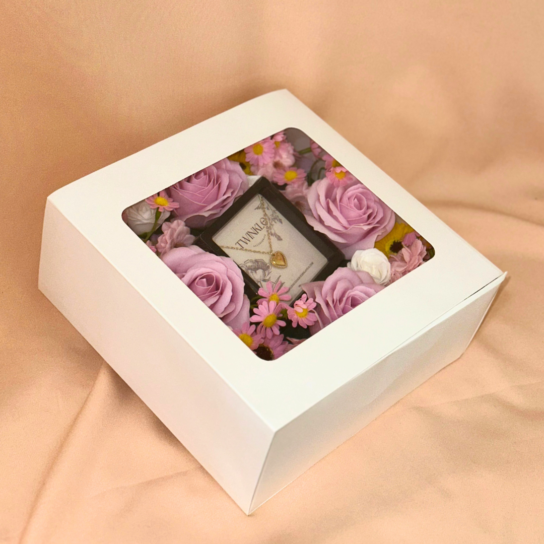 The Blooming Glam is the perfect fusion of elegance and luxury, featuring a stunning Soap Flower. Paired with a carefully selected accessory by Twinkle that’s waterproof, rust-free, and hypoallergenic, this gift box offers lasting beauty and style. A chic and thoughtful way to treat someone special.